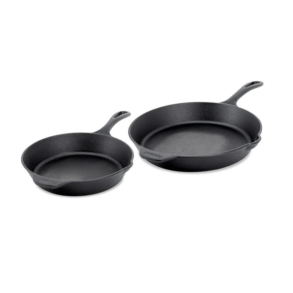 The Essential Line Skillet Pan combines reduced weight with the full strength of cast iron: it reliably retains heat, cooks evenly and is ready to use immediately thanks to its seasoned finish. The practical side spout and handle ensure precise handling – whether for tossing, portioning or serving directly.
